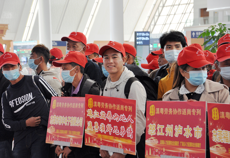 迎着春风出发!滇粤劳务协作返岗专列再启程送610名老乡返岗