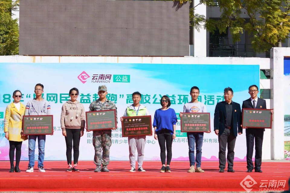现场领导为云南工程职业学院4个优秀志愿服务团队和校团委进行授牌。