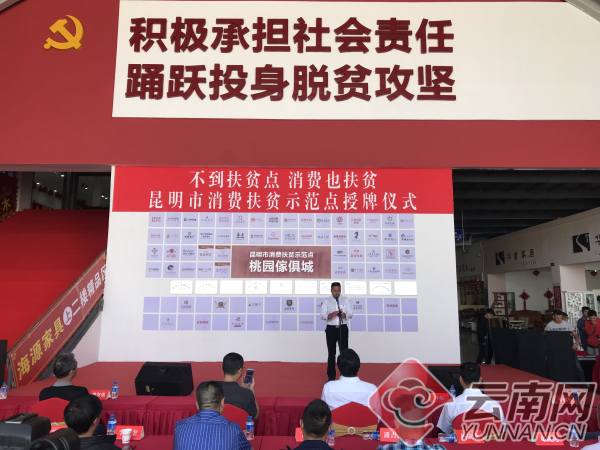 为贯彻落实国务院办公厅印发的《关于深入开展消费扶贫助力打赢脱贫攻坚战的指导意见》精神,昆明市委统战部、市工商联在昆明桃园家具城设立首个消费扶贫示范点,按照“不到扶贫点、消费也扶贫”的理念,为贫困地区农产品销售搭建平台,通过与农产品深加工企业、合作社、种植户开展合作,打通农产品的生产、销售、流通和消费环节,建立长期稳定的产销供销机制,推动贫困农户和企业共同发展,助力脱贫攻坚,推动产业振兴。消费扶贫点工作具体由五华区委组织部、区工商联、西翥街道党工委具体组织实施,示范点也成为五华区“党建引领、消费扶贫”扶贫工作模式的具体落点。