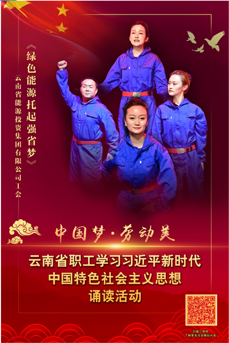 “绿色作底,创新为笔。云南打造世界一流“绿色能源牌......”舞台上,表演者倾情诵读,配合一抹“中国蓝”的舞蹈,让整个节目格外的显眼,他们是来自云南能投集团工会的职工。