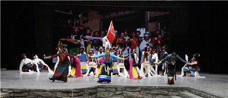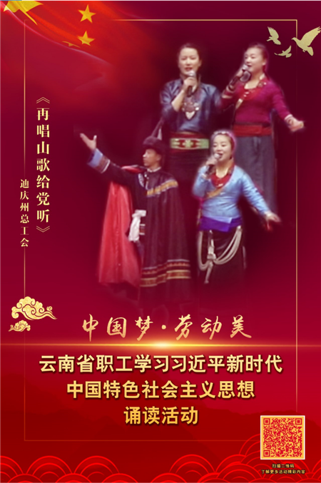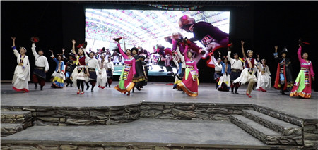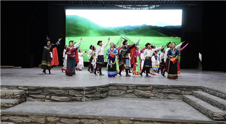 格桑花、迎春花、杜鹃花环抱的迪庆,绚丽多彩的民族团结之花也在这里绽放。由迪庆州总工会选送排演的节目《再唱山歌给党听》,在舞蹈和朗诵中,不仅展现出了迪庆州各民族职工们的热情与才华,更将他们对美好生活的追求融入其中。