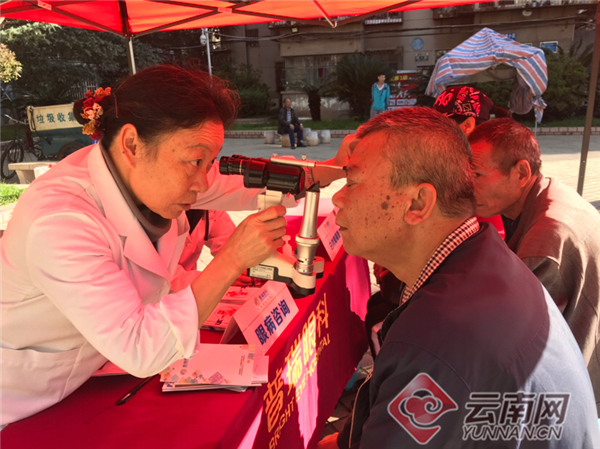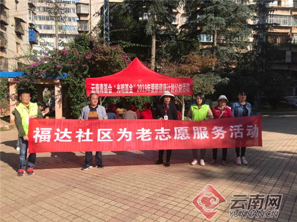 10月22日,云南省青少年发展基金会、昆明市青少年发展基金会联合普瑞眼科医院走进昆明市官上街道办事处福达社区,共同开展“光明基金”2019年爱眼健康计划公益活动。