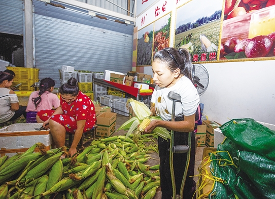 晚上8点43分,一辆装载着3.5吨甜脆玉米的货车驶入芒市风平镇农贸市场c-58号仓库。由于风雨太大,货车迟到了,留给李木兰打包贴单的时间更短了。过去的10个月里,李木兰在拼多多开了3个网店,将德宏的百香果、甜脆玉米销售了36000件,高峰期每天经手的包裹近3000单,销售总额108万元。