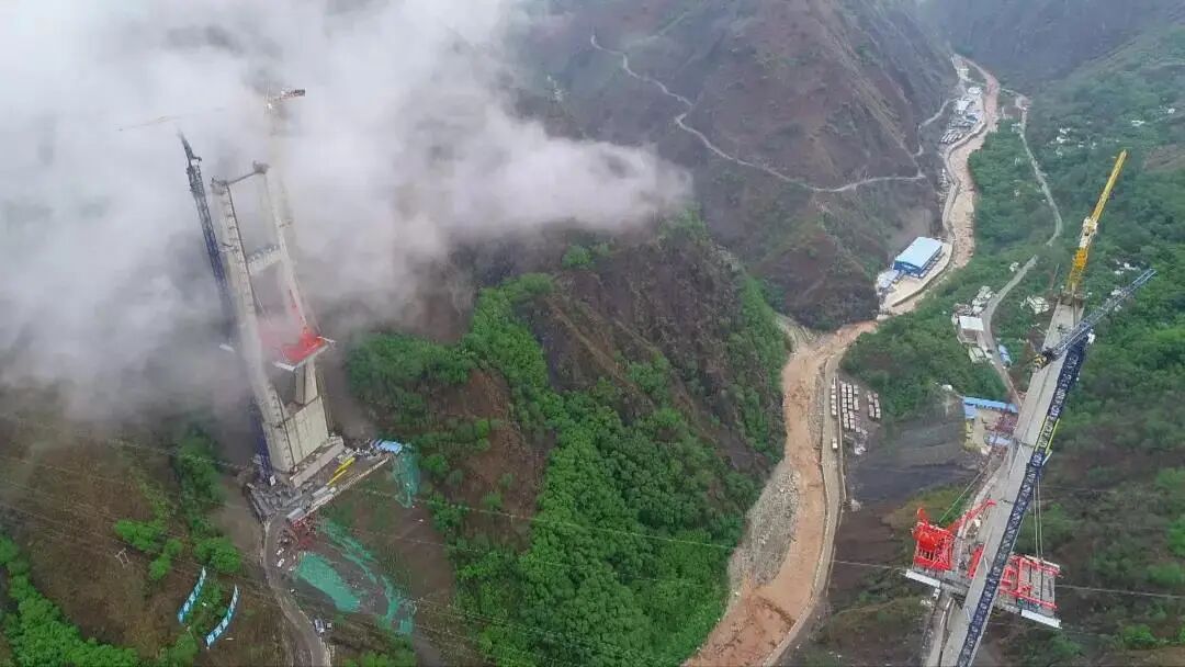 2019年4月25日,格巧高速双河特大桥的主塔成功封顶。它的低塔高170米,高塔高229米,建成之后将是云南省最大的高低塔组合梁斜拉桥。