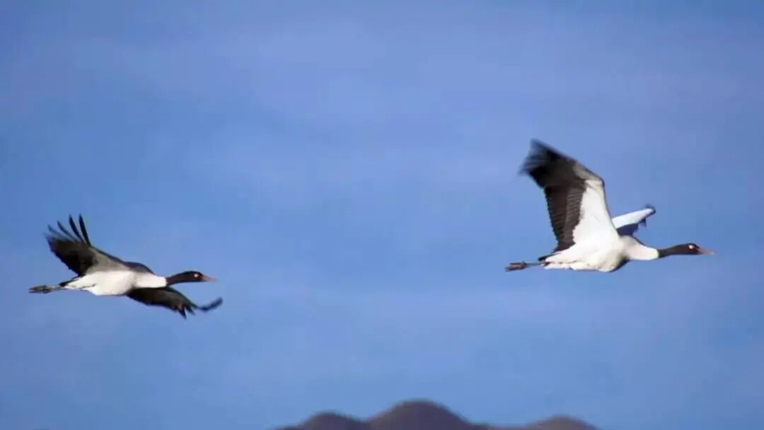 到了冬季,世界上仅存一万余只的黑颈鹤也翩然而至,避寒越冬。