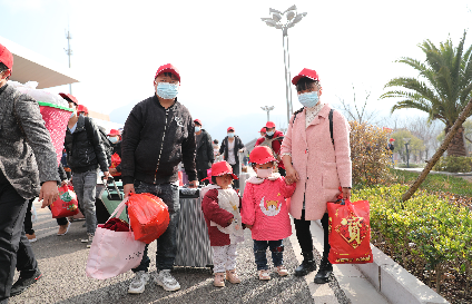 2月23日上午,994名务工人员和随行子女分两批分别乘坐昆明南开往杭州东方向的G1376次和玉溪开往嘉兴南方向的G1422次高铁动车踏上旅途。首批最后475名务工人员和随行子女也于2月24日上午在该站登上玉溪开往嘉兴南的G1422次高铁列车前往务工地。