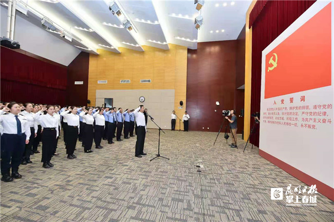 面对鲜红的党旗,来自全市各领域的150名新党员代表在刘申寿的带领下,举起右手,庄严宣誓。“我志愿加入中国共产党,拥护党的纲领……”铿锵的誓词,回荡在会场内,铭刻在每一个人的心头。